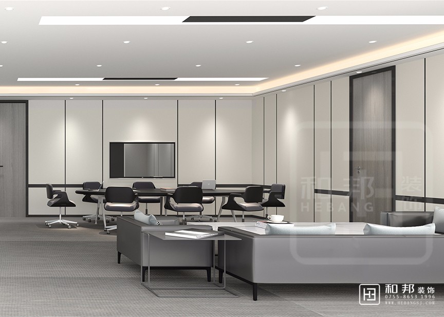 較為精煉的顏色打造干凈整潔的視覺效果,可以達到放大空間的視覺效果,有助于提升整個辦公空間的品質感。