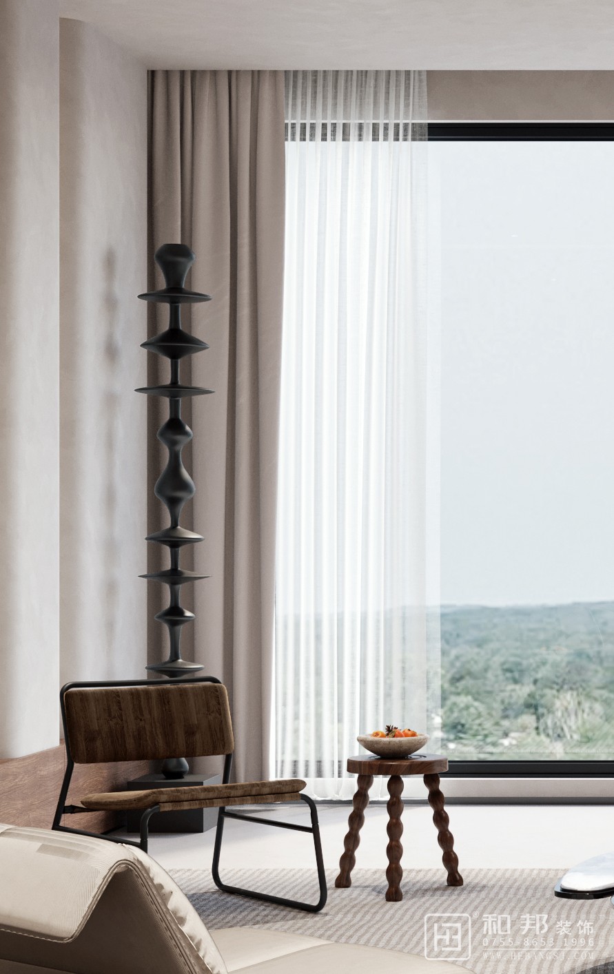 本客廳采用侘寂風格設計,以 “寂” 為核,在質樸、自然的空間中,詮釋歲月沉淀之美。摒棄繁雜,用簡約形態與天然材質,營造寧靜、內省氛圍,讓居者在喧囂中尋得心靈歸處 。